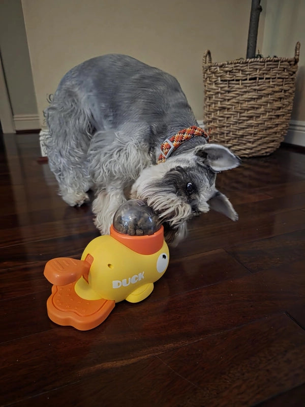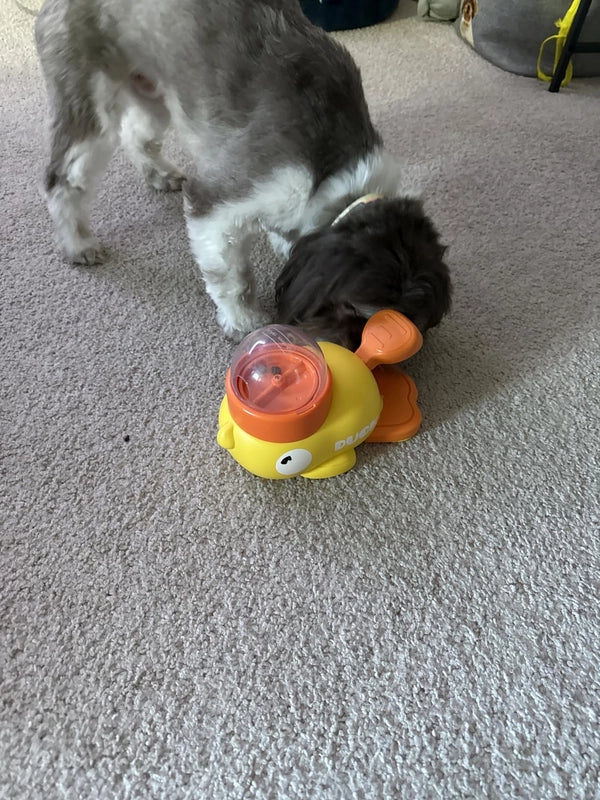 Watch your furry friend's tail-wags multiply as they sniff, nudge, and play their way to happy chomps! This delightful duck isn't just a feeder; it's a daily dose of enrichment, turning routine meals into an exciting treasure hunt. Say goodbye to gobbling and hello to joyful discovery!